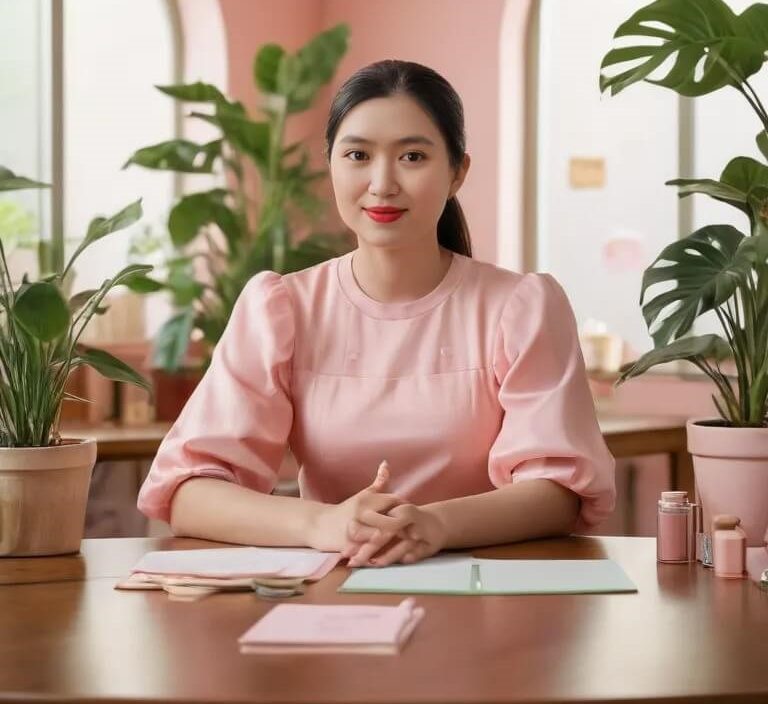Trên mặt bàn, luôn có một vài món đồ chơi gỗ đang được thử nghiệm, một quyển sách EHON mở dở, những gam màu nước nhạt còn chưa khô hẳn. Góc trái là bảng moodboard dán chằng chịt ảnh bé, giấy nháp, thiệp viết tay từ khách, và cả những mảnh giấy ghi chú nho nhỏ: “Nhớ thử thêm chất liệu mềm hơn cho bé 2 tuổi”, “Tối giản màu – để bé dễ tập trung hơn”.